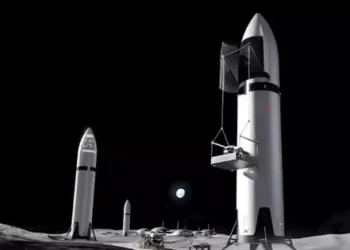 Hình ảnh mô phỏng tàu Starship của SpaceX với một căn cứ trên Mặt trăng ở phía xa Dù khả ...