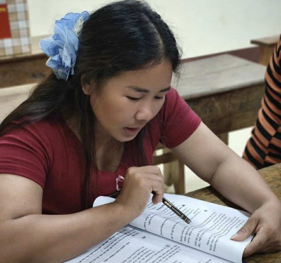 Để giúp các học viên lớn tuổi tiếp thu được kiến thức thay vì chỉ bám vào giáo trình, các cô giáo trực tiếp đứng lớp đã linh hoạt lồng ghép kiến thức vào những tình huống quen thuộc hằng ngày, từ việc tính toán số ngô cần phơi, cách ghi tên trong sổ mua hàng, đến việc đọc các biển báo trên đường. Mỗi bài học trở nên gần gũi, dễ hiểu, khiến bà con hào hứng và mạnh dạn hơn.