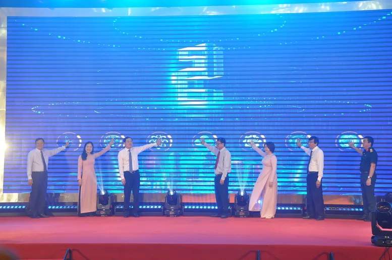 Các đại biểu bấm nút phát động Tuần lễ Khoa học công nghệ, Đổi mới sáng tạo và Chuyển đổi số TP Cần Thơ năm 2025 – Ảnh: TL