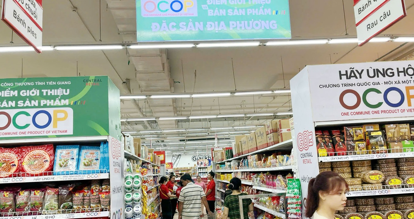 Kệ trưng bày hàng Việt tại siêu thị GO! Mỹ Tho – Ảnh: TL