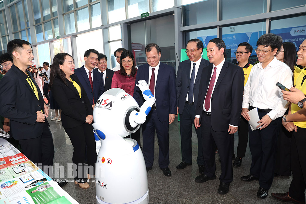 Các đại biểu tham quan các mô hình công nghệ số. (Ảnh: Báo Ninh Bình)