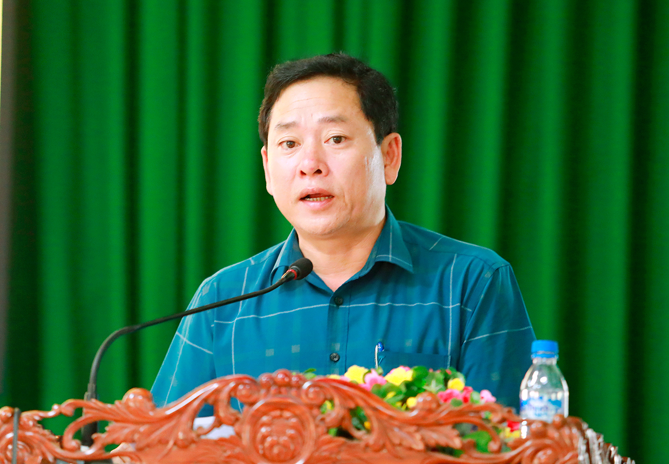 Đồng chí Lê Hồng Văn, Chủ tịch UBND xã Krông Năng phát biểu chỉ đạo trong cuộc họp về Chuyển đổi số