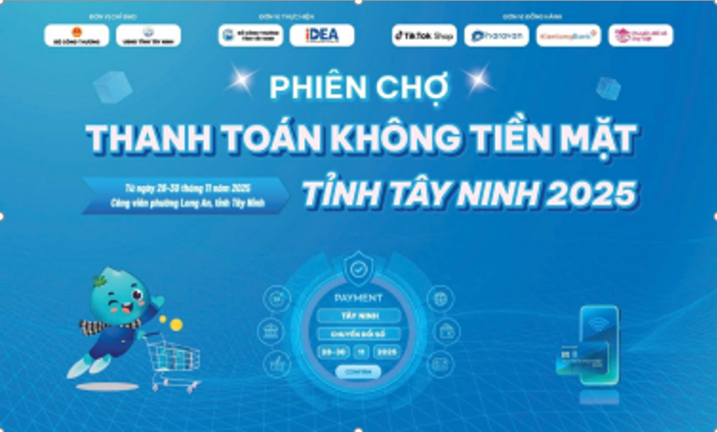 VNHNTừ ngày 28 đến ngày 30/11/2025 (03 ngày, 03 đêm), tại khu vực công viên phường Long An, tỉnh Tây Ninh sẽ tổ chức Chương trình “Phiên chợ thanh toán không tiền mặt 2025”, nhằm thúc đẩy thanh toán số trong cộng đồng, tạo không gian trải nghiệm các dịch vụ tài chính hiện đại và khuyến khích người dân tiếp cận phương thức giao dịch tiện lợi, an toàn.