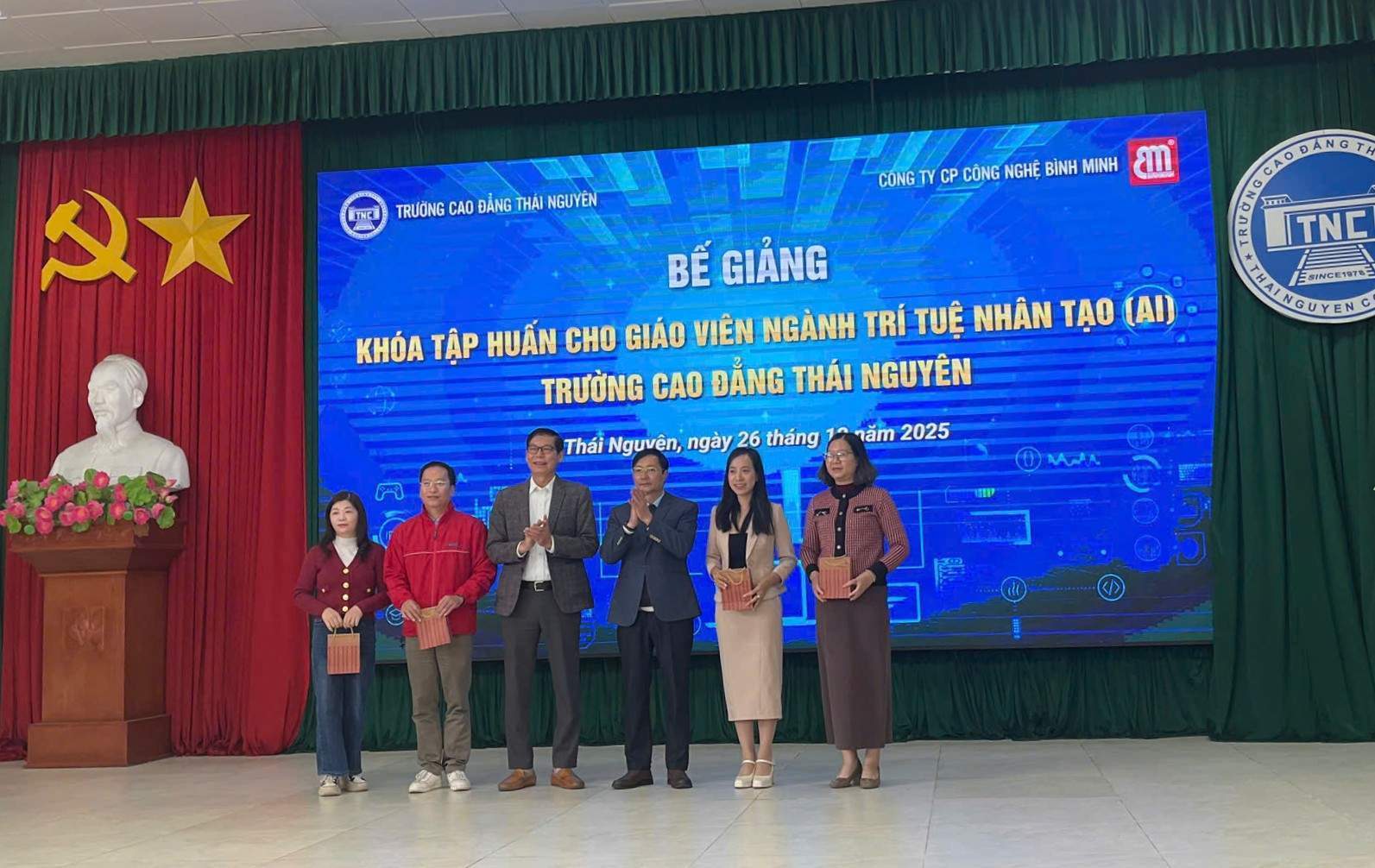 VNHNSau 4 tuần học tập nghiêm túc, bài bản và giàu tính thực hành, Trường Cao đẳng Thái Nguyên (TNC) đã tổ chức bế giảng khóa tập huấn ngành Trí tuệ nhân tạo (AI) cho đội ngũ giảng viên, đánh dấu bước đi quan trọng trong lộ trình đào tạo nguồn nhân lực AI, hướng tới mở ngành Trí tuệ nhân tạo trình độ trung cấp, cao đẳng trong thời gian tới.