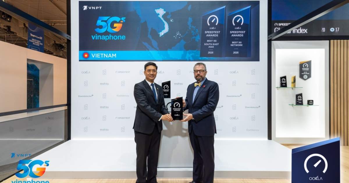 Tại sự kiện Mobile World Congress 2026 diễn ra ở Barcelona (Tây Ban Nha) mới đây, mạng VinaPhone (thuộc Tập đoàn Bưu chính Viễn thông Việt Nam – VNPT) là đại diện duy nhất của Việt Nam được tổ chức Ookla (đơn vị đo kiểm tốc độ viễn thông hàng đầu thế giới) trao tặng chứng nhận“Best 5G Network Award in Vietnam and SEA”- nhà mạng 5G tốt nhất tại Việt Nam và khu vực Đông Nam Á.