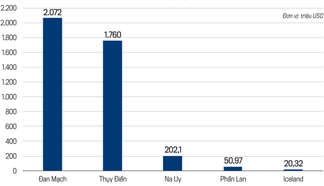 đầu là Đan Mạch với hơn 2,07 tỷ USD (175 dự án); tiếp theo là Thụy Điển với