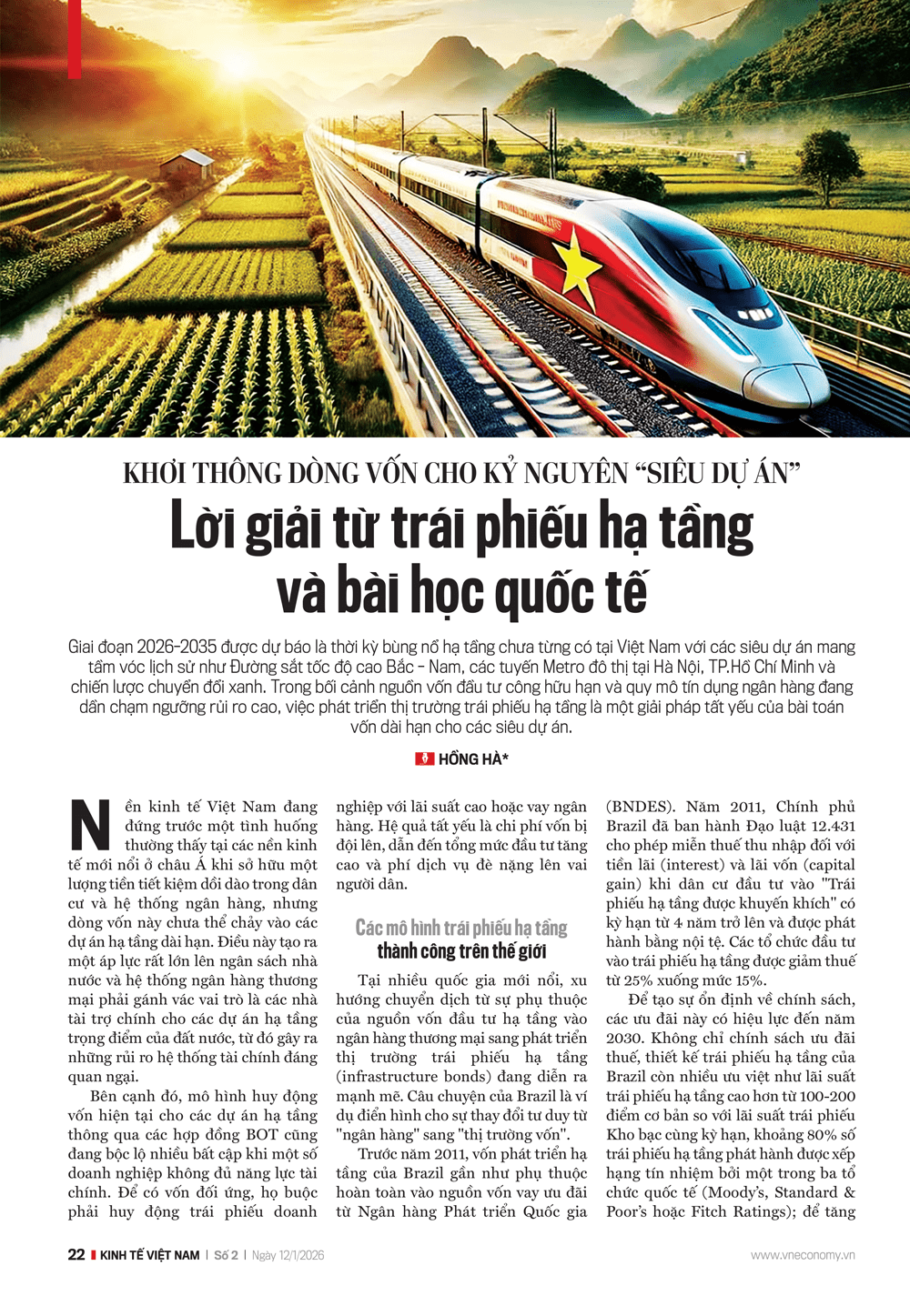 Giai đoạn 2026-2035 được dự báo là thời kỳ bùng nổ hạ tầng chưa từng có tại Việt Nam với các siêu dự án mang tầm vóc lịch sử như Đường sắt tốc độ cao Bắc – Nam, các tuyến Metro đô thị tại Hà Nội, TP.Hồ Chí Minh và chiến lược chuyển đổi xanh. Trong bối cảnh nguồn vốn đầu tư công hữu hạn và quy mô tín dụng ngân hàng đang dần chạm ngưỡng rủi ro cao, việc phát triển thị trường trái phiếu hạ tầng là một giải pháp tất yếu của bài toán vốn dài hạn cho các siêu dự án.