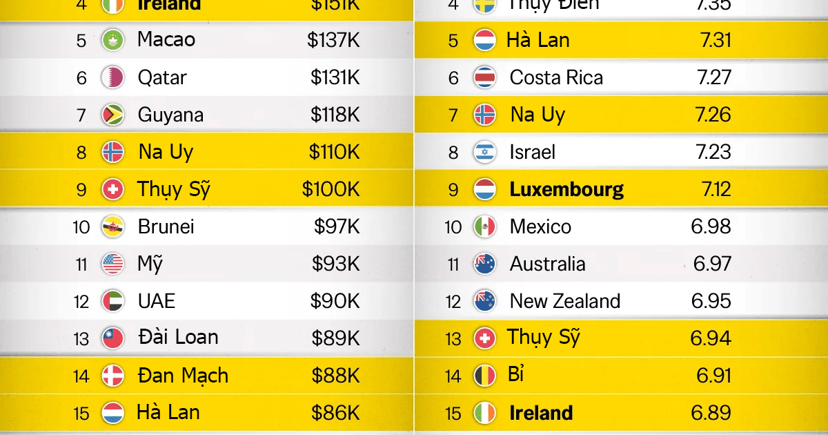 với hơn 206.000 USD, tiếp theo là Singapore và Luxembourg. Top 10 chủ yếu là