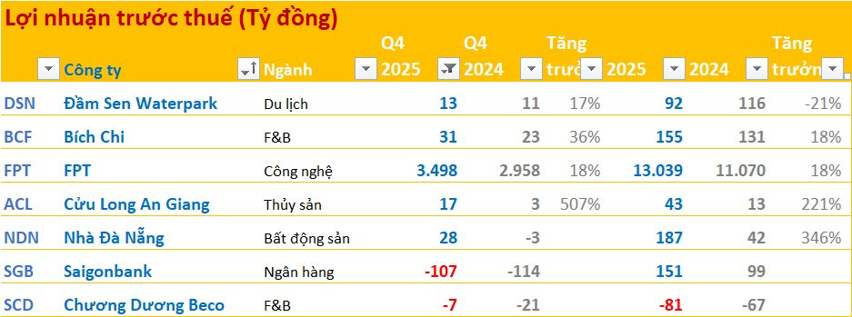 Các doanh nghiệp đã công bố BCTC quý 4/2025: