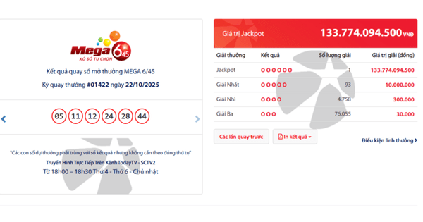 Một vé trúng độc đắc gần 134 tỷ đồng trong tối 22/10. (Ảnh: Đại Việt)