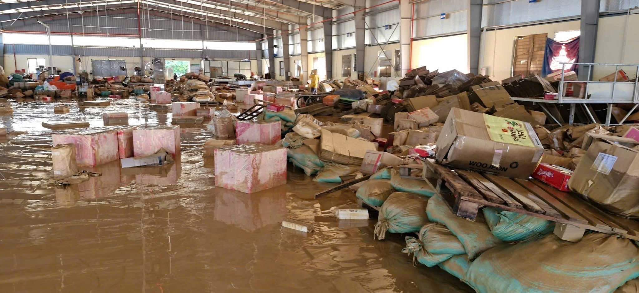 khó khăn khi nhà xưởng, kho hàng, hệ thống máy móc bị hư hỏng, hàng hóa ngập nước.