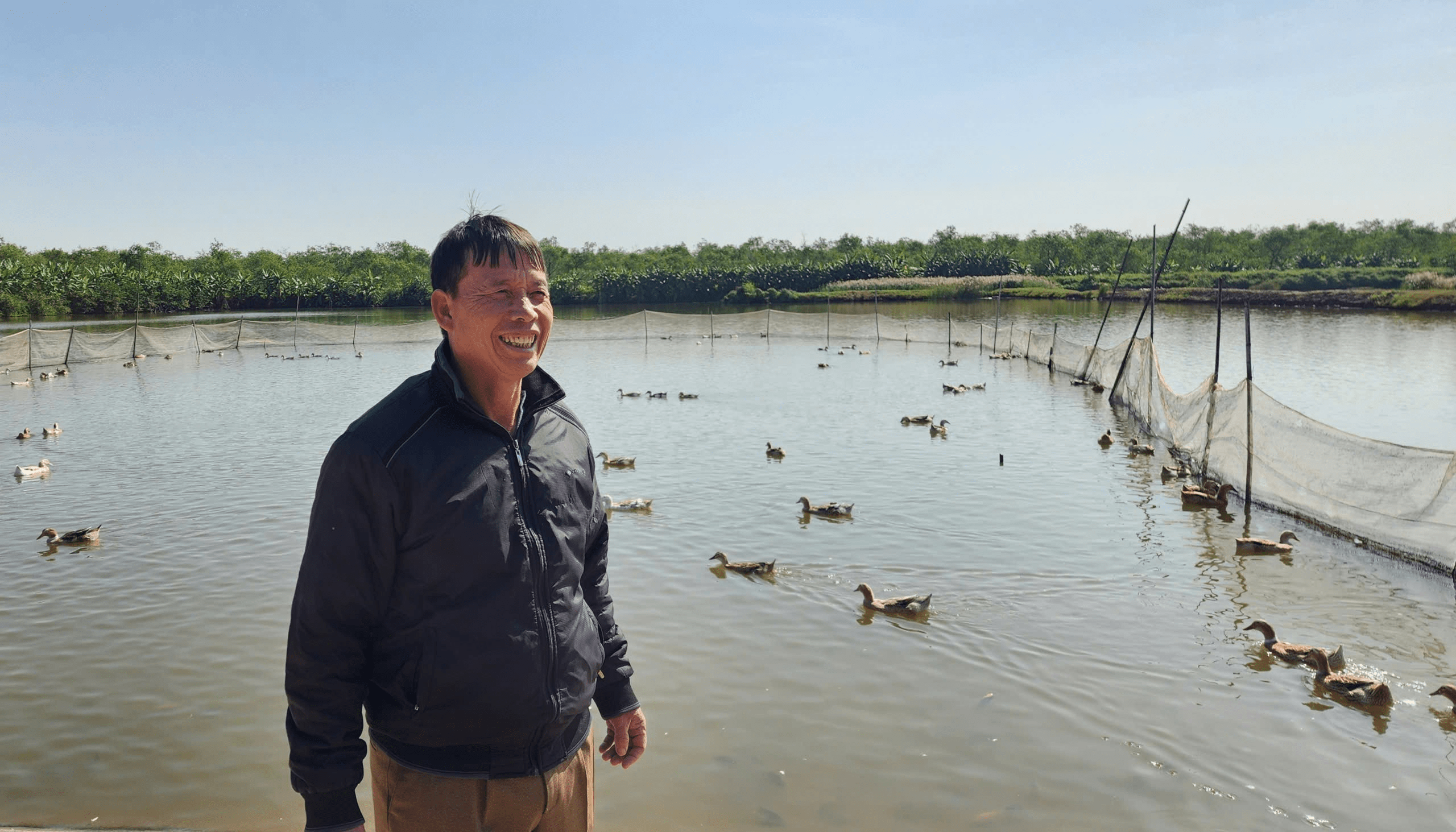 mô lớn nhưng ông cũng rất bằng lòng với khu đầm thủy sản cùng trang trại vịt biển