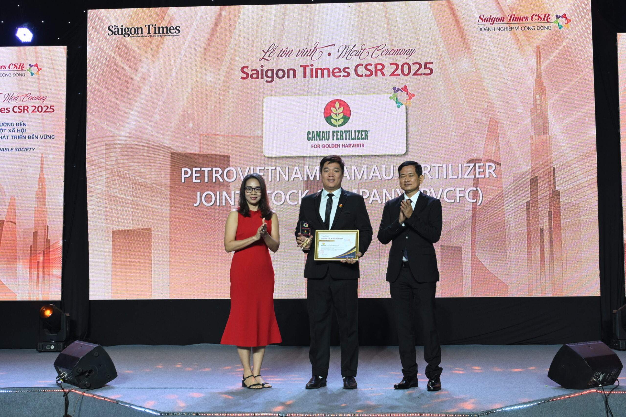 Với nhiều nỗ lực không ngừng trong thực thi trách nhiệm xã hội và kiên định con đường phát triển xanh, Công ty Cổ phần Phân bón Dầu khí Cà Mau (Phân Bón Cà Mau – PVCFC) tiếp tục được vinh danh “Doanh nghiệp vì cộng đồng” tại Lễ tôn vinh Saigon Times CSR 2025 do The Saigon Times thuộc Tạp chí Kinh tế Sài Gòn tổ chức ngày 5/11/2025 tại TP. Hồ Chí Minh.