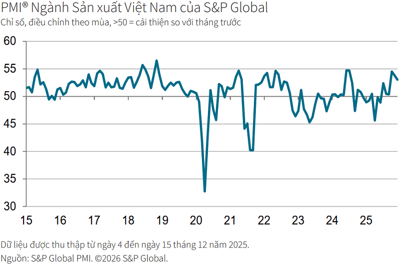 trị mua hàng (PMI) ngành sản xuất Việt Nam trong tháng 12/2025. Trong đó có 3