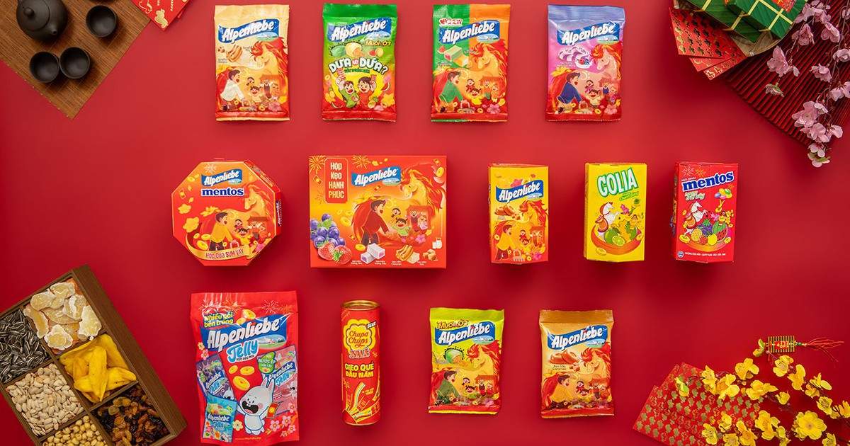 Bộ sưu tập tết 2026 mang đến hệ hương vị phong phú từ các thương hiệu biểu tượng Alpenliebe, Chupa Chups, Mentos và Golia