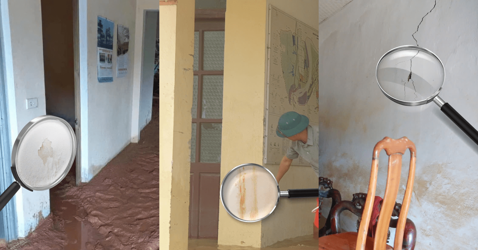 Anh Lê Văn Hùng (Hà Tĩnh) chia sẻ: “Nước lụt ngập gần nửa tường. Khi rút đi thì tường chuyển màu vàng nhạt, lớp sơn mềm nhũn rồi tróc ra từng mảng. Mùi ẩm mốc nặng lắm, trẻ con trong nhà ho suốt”.