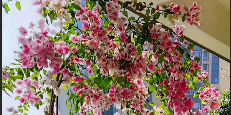 Cây có đặc điểm thân leo, cành dẻo, dễ tạo dáng, với những chùm hoa mỏng nhẹ nhưng rực rỡ, tạo hiệu ứng thị giác nổi bật cho không gian ban công. Khi được trồng trong chậu và dẫn theo giàn hoặc lan can, hoa giấy có thể phát triển thành những mảng màu bắt mắt, giúp ban công trở nên sinh động hơn.