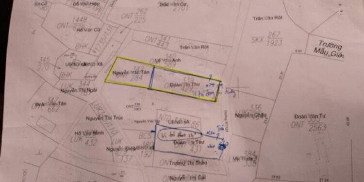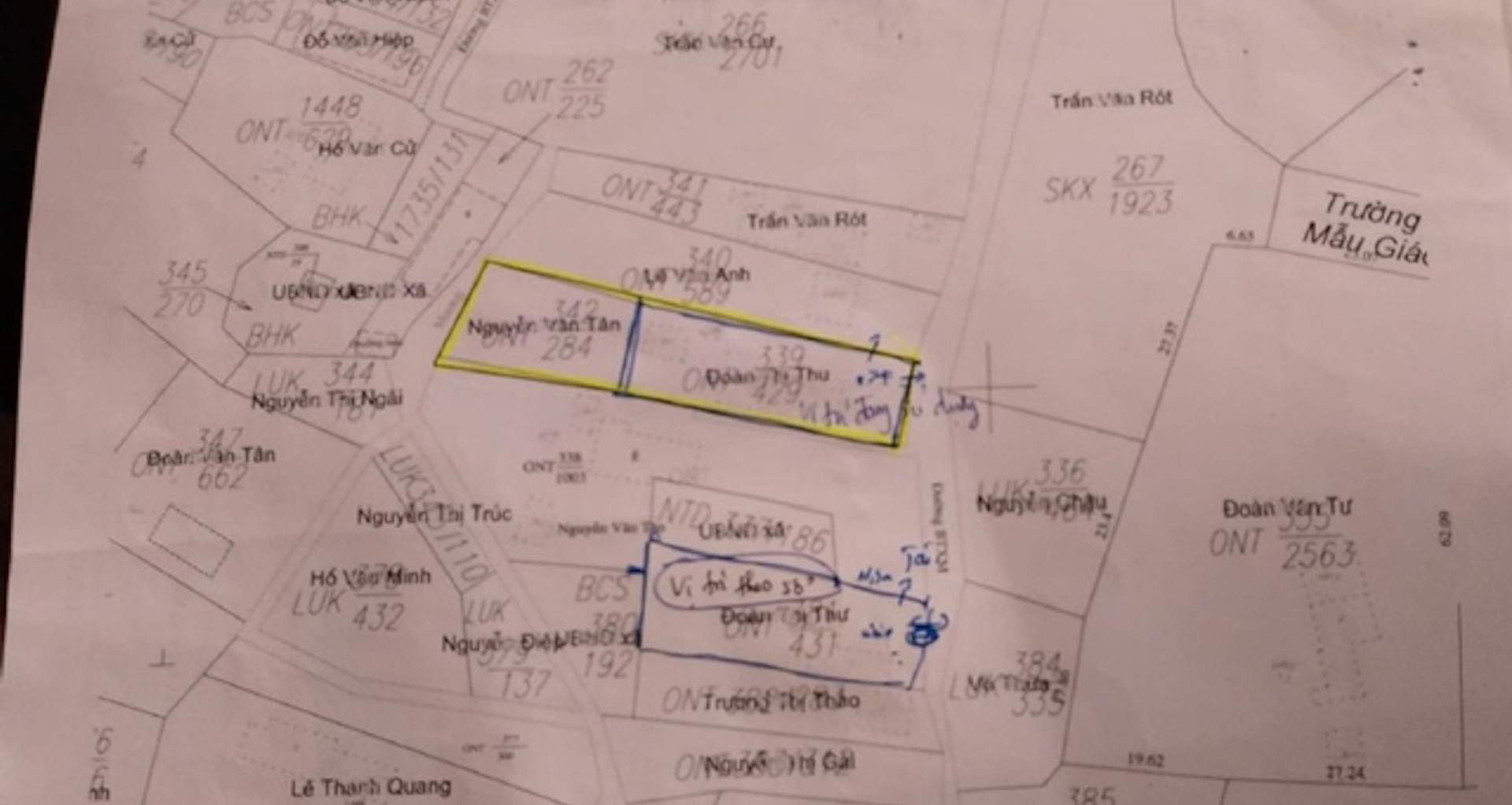 Cụ thể, sổ đỏ đứng tên bà lại là thửa đất do hàng xóm A. sử dụng. Trong khi đó, mảnh đất bà đang sử dụng lại chia thành hai thửa. Một thửa là phần đất có nhà ở nhưng lại đứng tên một người hoàn toàn xa lạ mà bà không biết. Thửa còn lại đang được bà sử dụng để trồng trọt thì đứng tên hàng xóm B.