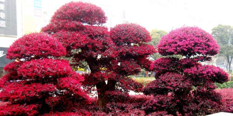 Thuộc họ kim lũ mai, loài cây này gây ấn tượng ngay từ ánh nhìn đầu tiên nhờ sắc lá tím đỏ đặc trưng cùng những chùm hoa mảnh như sợi tơ, mềm mại mà cuốn hút.