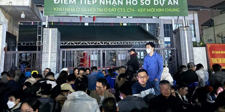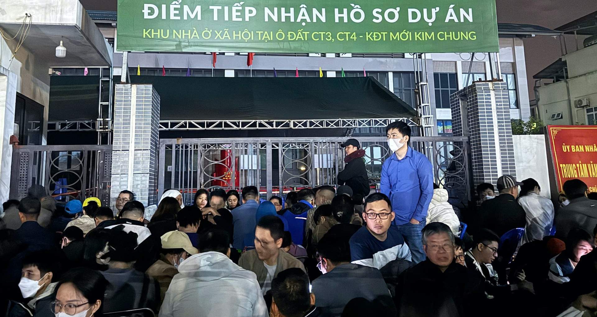 Theo thông báo của Sở Xây dựng Hà Nội, thời điểm tiếp nhận hồ sơ chính thức dự án nhà ở xã hội CT3 khu đô thị Kim Chung (xã Thiên Lộc) là ngày 17/11. Tuy nhiên, từ cuối giờ chiều 16/11, dòng người đã kéo đến khu vực nhận hồ sơ dự án tại Trung tâm Văn hóa – Thông tin & Thể thao của xã Thiên Lộc để giữ chỗ. Nhiều người mang theo nước uống, đồ ăn, ghế gấp, chăn… sẵn sàng cho một đêm dài.