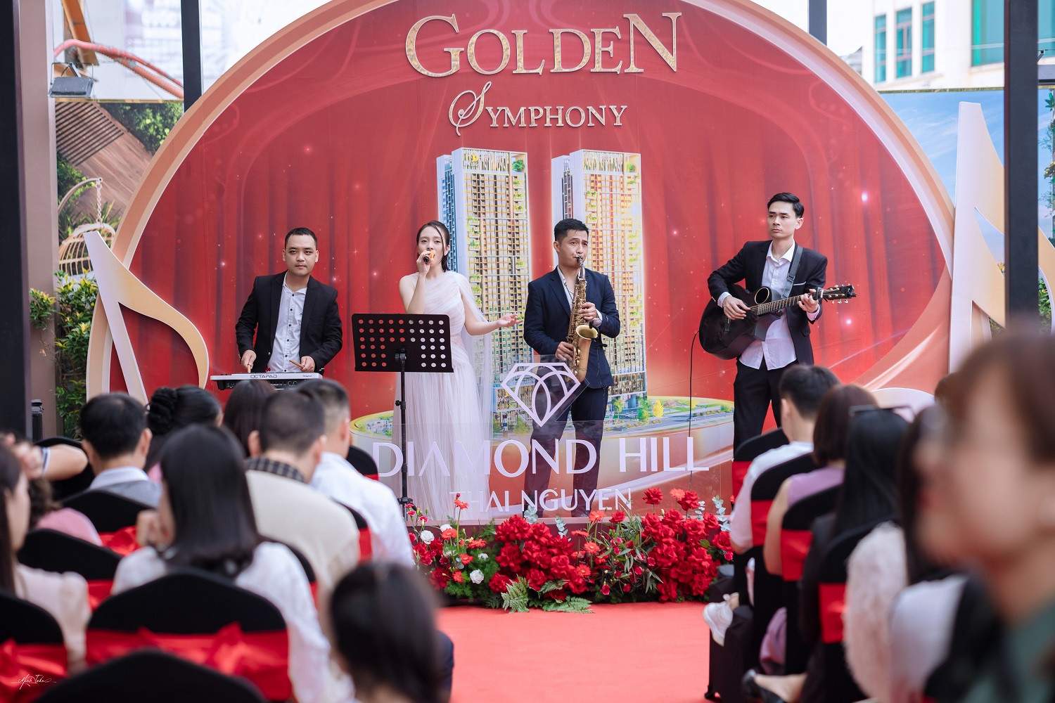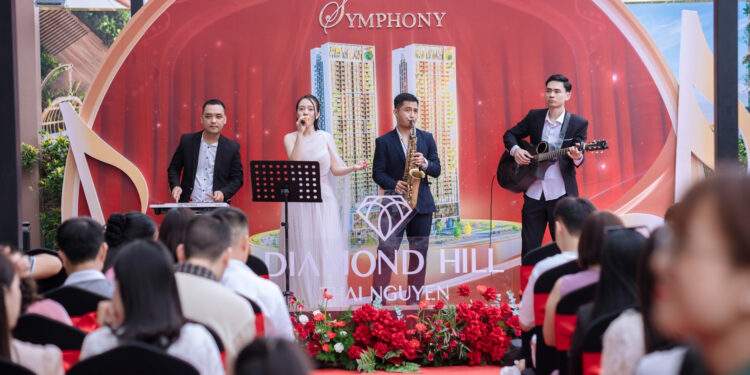 Ngày 9/11 vừa qua, sự kiện “Golden Symphony – Cơ hội vàng sở hữu tổ ấm mơ ước tại Diamond Hill” đã diễn ra tại văn phòng bán hàng dự án, ở trung tâm Thái Nguyên, thu hút sự quan tâm của đông đảo khách hàng và nhà đầu tư. Không gian được dàn dựng như một triển lãm nghệ thuật sống động: tiệc cocktail tinh tế, âm nhạc du dương và khu vực trải nghiệm được bố trí ấn tượng. Trên nền giai điệu acoustic và saxophone, mỗi bản nhạc ngân vang gợi mở cảm xúc về phong cách sống hiện đại, tận hưởng và tinh tế, đúng tinh thần mà Diamond Hill theo đuổi.