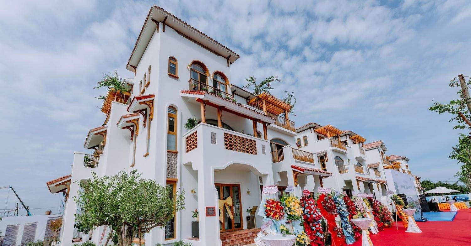 Mỗi căn nhà Casa hoàn thiện đều tôn vinh trọn vẹn phong vị tinh tế của kiến trúc Iberia, hòa quyện cùng bản sắc văn hóa Nam Bộ. Gam trắng tinh khôi chủ đạo được nhấn nhá bằng sắc nâu đỏ của mái ngói terracotta và màu nâu trang nhã của các họa tiết trang trí, khiến từng khối nhà nổi bật giữa sắc xanh dịu mát của biển trời.