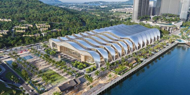 Sau khi tới đảo, đoàn đã tham quan công trình trọng điểm đang được Sun Group triển khai đón APEC 2027. Đó là Trung tâm tổ chức Hội nghị APEC quy mô 16,06 ha, tổng mức đầu tư 21.860 tỷ đồng. Chưa đầy 6 tháng kể từ khi xây dựng, 2 hạng mục chính là trung tâm hội nghị và nhà hát đa năng đều đạt mức 33% tổng khối lượng xây dựng. Dự kiến hoàn thiện nội thất vào 31/1/2027.