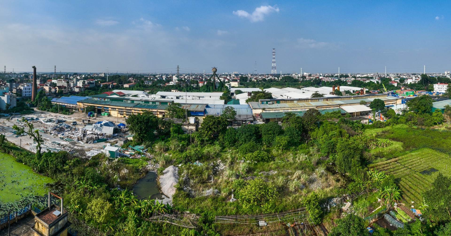 Do chưa được triển khai, một phần diện tích khu đất được sử dụng tạm thời làm kho bãi, nhà xưởng. Trong hình, nhà xưởng, kho bãi tạm bợ đã được dựng lên.