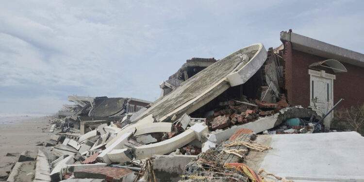 Người dân địa phương đặt nghi vấn tình trạng đổ sập này một phần do khu biệt thự được xây dựng quá sát biển mà không có hệ thống kè chắn sóng bảo vệ.