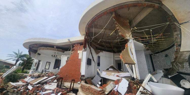 Như VietNamNet phản ánh, sau bão số 10 tại Khu Resort Hoa Tiên Xuân Thành ở khu du lịch Xuân Thành (thuộc xã Tiên Điền) có nhiều căn villa bị sóng đánh đổ sập và hư hỏng nặng nề. Hàng chục căn biệt thự sang trọng nằm sát biển có giá trị hàng chục tỷ đồng giờ chỉ còn lại là những mảng tường đổ sập, nền móng trơ trọi nằm ngổn ngang giữa bãi cát.