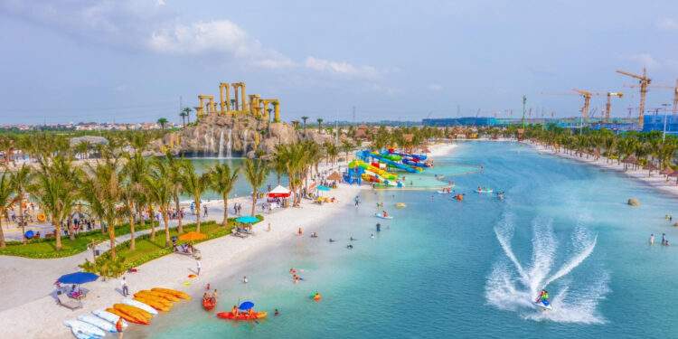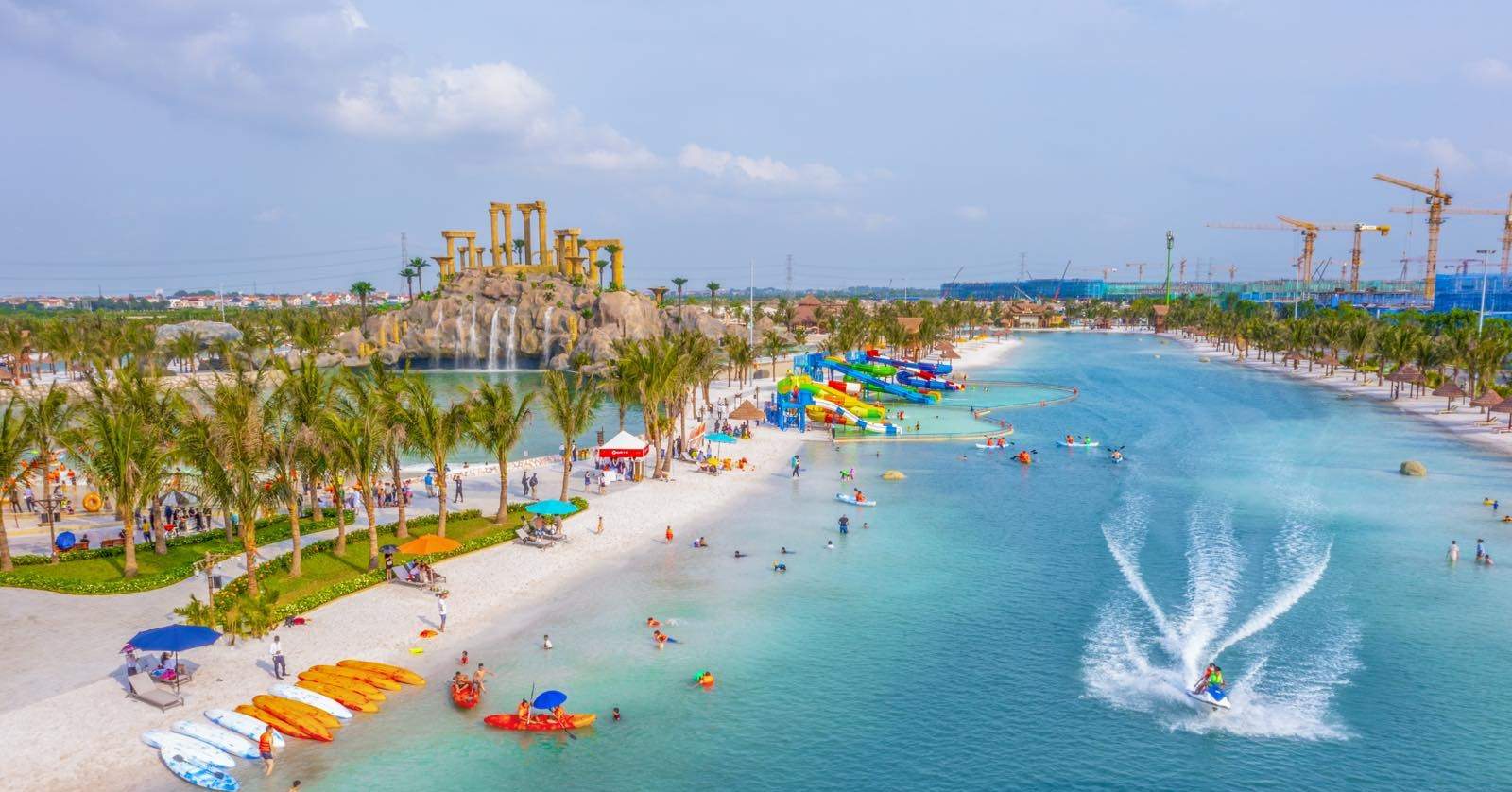 Ở đây, biển không còn là khái niệm gắn liền với những chuyến đi xa, mà trở thành một phần của đời sống thường nhật. Crystal Lagoon xanh ngọc trải dài, hồ Ngọc Trai phẳng lặng, VinWonders Water Park rực sắc nhiệt đới, VinWonder Wave Park đậm chất hội hè… tạo nên một quần thể mặt nước khổng lồ hiếm có phía Đông Hà Nội. Những bãi cát trắng mịn, hàng dừa nhiệt đới và nhịp sóng nhân tạo mang tới trải nghiệm như đang sống giữa một khu resort biển đẳng cấp.