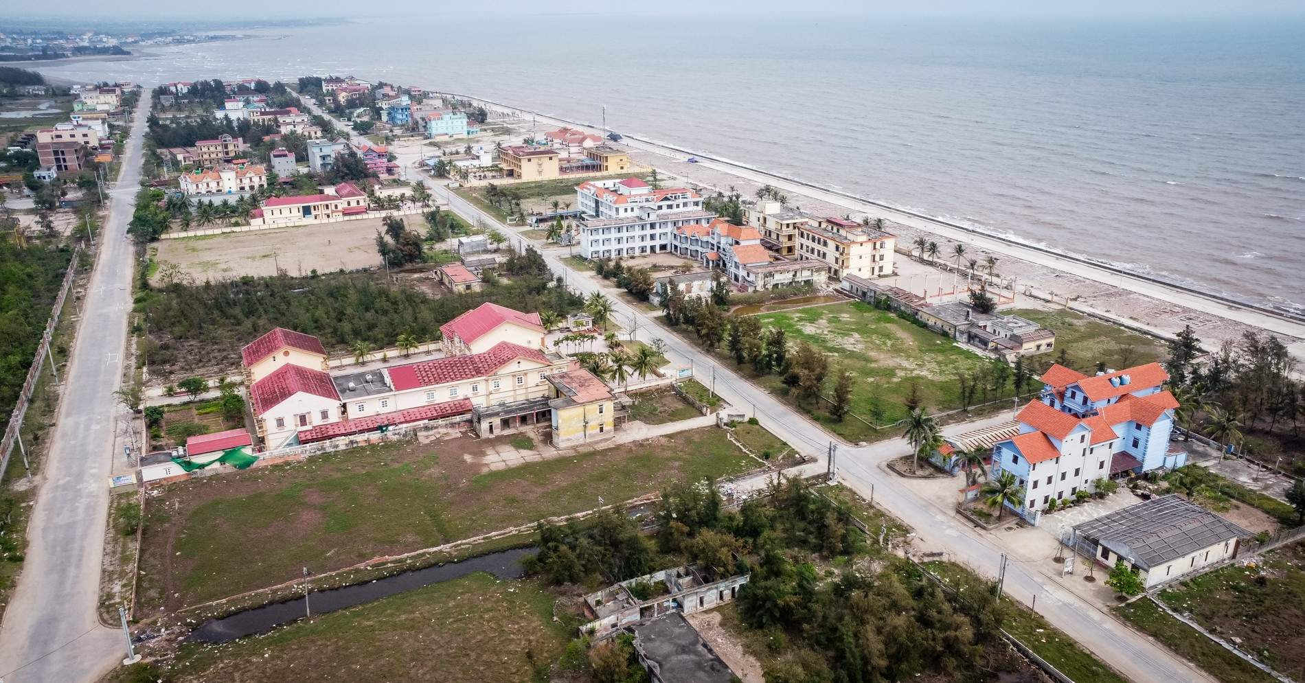 Từ năm 2019 đến nay, dọc bờ biển Quất Lâm, dễ dàng bắt gặp hàng loạt khách sạn, nhà hàng trong tình trạng đóng cửa, bỏ không, xuống cấp, khiến cảnh quan trở nên đìu hiu, thiếu sức sống.