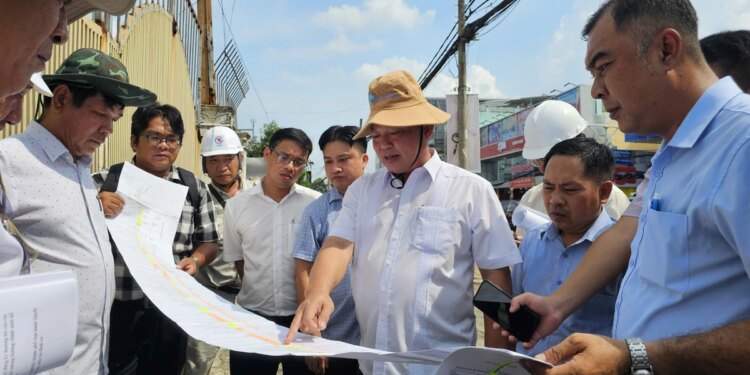 Phó chủ tịch UBDN thành phố Cần Thơ Nguyễn Văn Hòa (thứ ba từ phải sang) kiểm tra thực địa tại quốc lộ 91 chiều 3-3 – Ảnh: CHÍ QUỐC