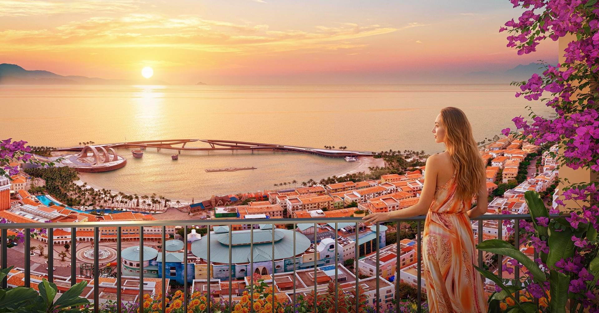 Phân khu The Sunset là một trong các dự án trọng điểm phục vụ APEC 2027, gồm 4 tòa tháp cao tầng trên sườn núi Ông Quán, nơi bao quanh bởi hệ sinh thái Sun Group tại đảo Ngọc. Đây là những tòa căn hộ cuối cùng tại Thị trấn Hoàng hôn, hoàn thiện bức tranh đa sắc màu cho chủ sở hữu.