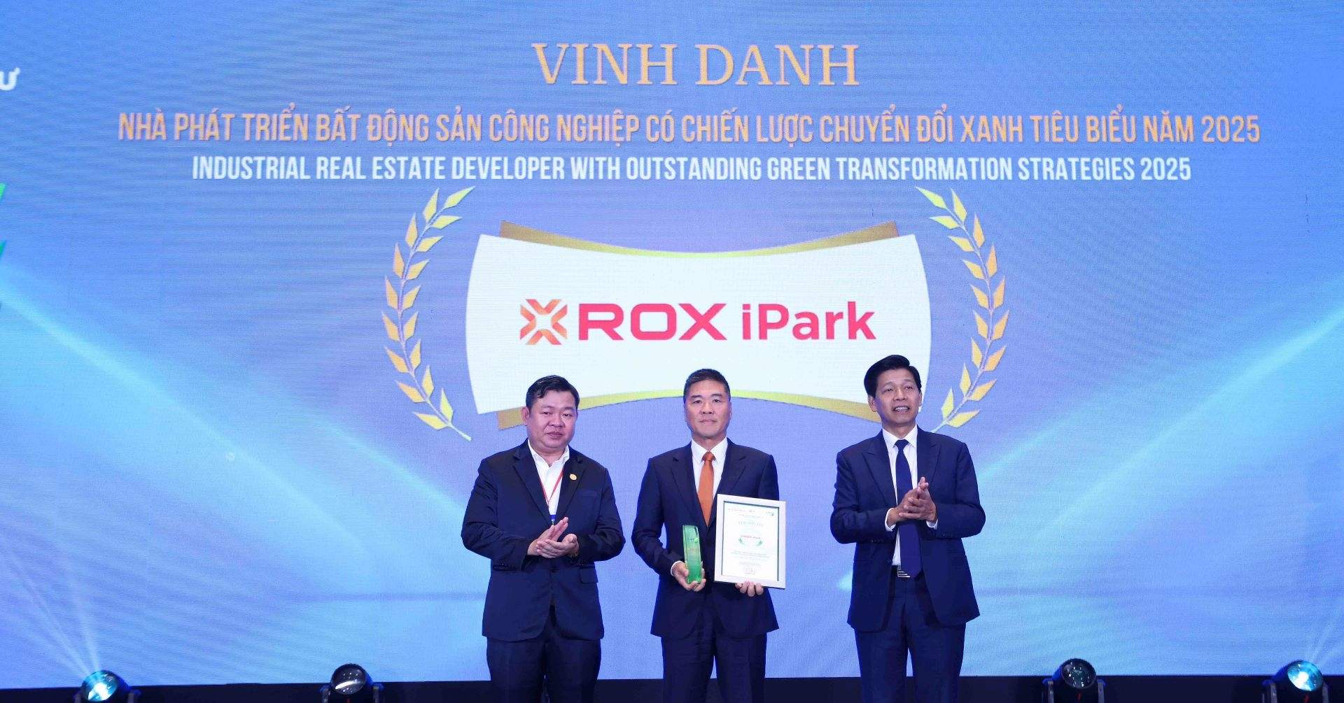 Chia sẻ tại lễ vinh danh, đại diện ROX iPark bày tỏ: “Danh hiệu này không chỉ là sự ghi nhận cho những nỗ lực của chúng tôi trong hành trình phát triển khu công nghiệp xanh mà còn là cam kết lâu dài của ROX iPark đối với mục tiêu kiến tạo hệ sinh thái khu công nghiệp bền vững, đồng hành cùng nhà đầu tư trên hành trình ESG”.