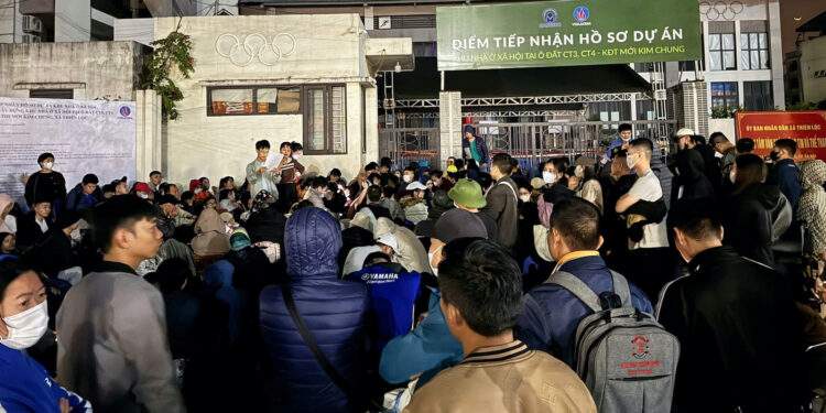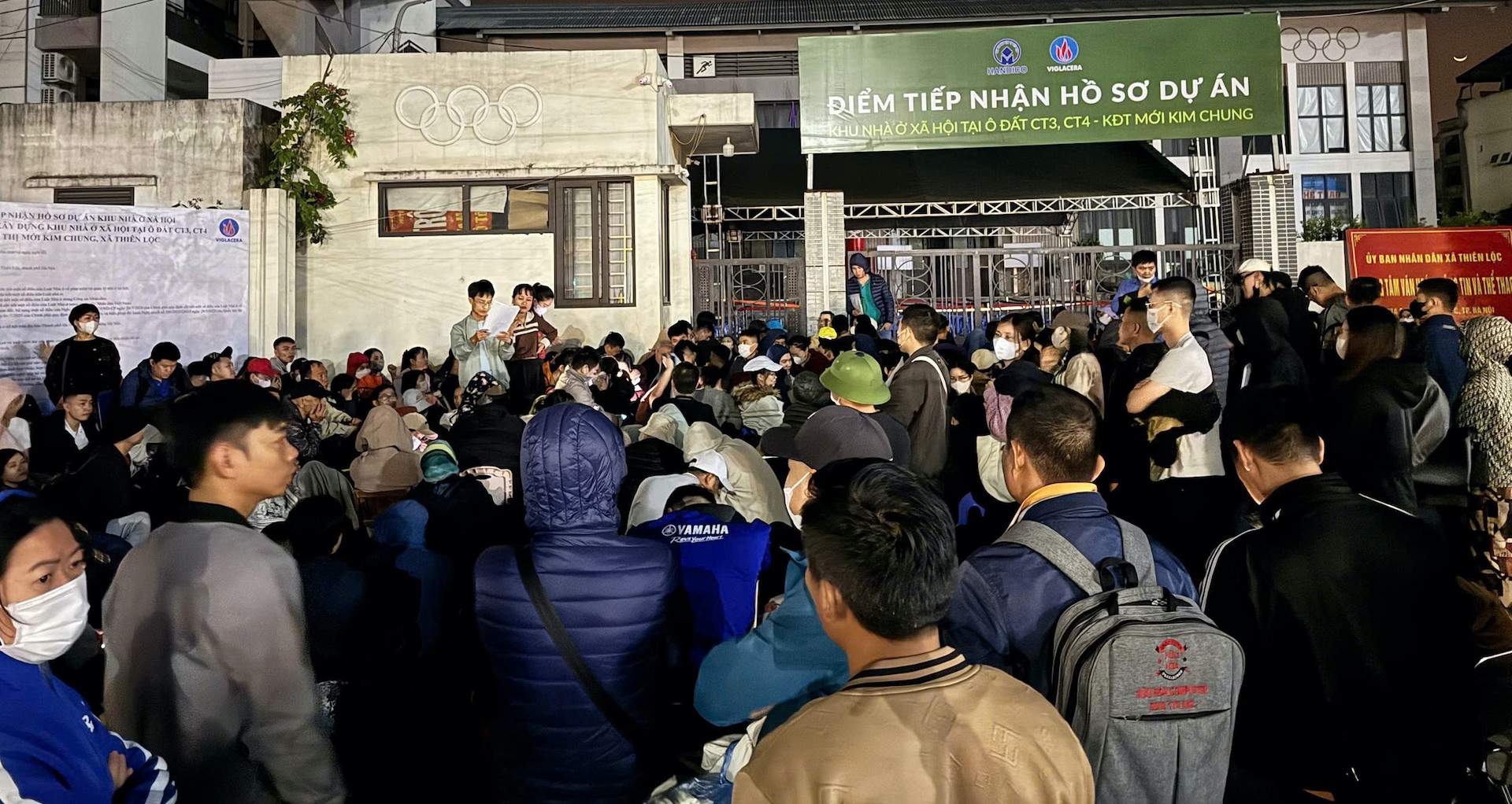 Như VietNamNet phản ánh, tại dự án NƠXH CT3 khu đô thị Kim Chung, xã Thiên Lộc (Hà Nội), hàng trăm người đã tập trung tại khu vực chủ đầu tư bố trí, chờ xuyên đêm để sáng 17/11 nộp hồ sơ.
