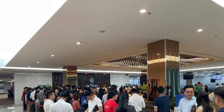 Trong 2 ngày 06-07/11, phòng thủ tục của Vinhomes tại Vincom Mega Mall Thảo Điền (TP.HCM) đã kín chỗ. Dòng khách đông tới mức nhiều người phải xếp hàng xuyên trưa để làm thủ tục. Song, ai cũng kiên nhẫn bởi đã đợi ngày này từ rất lâu.