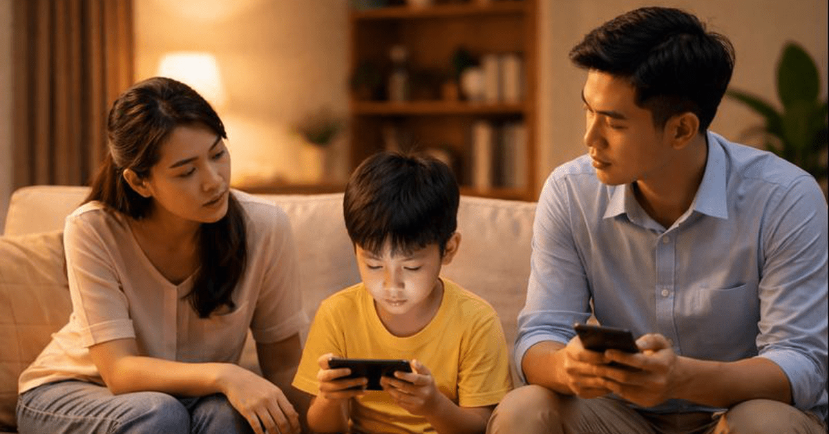 Đáng chú ý, cha mẹ chính là tấm gương trực quan nhất cho con trẻ. Khi người lớn liên tục dán mắt vào điện thoại, trẻ khó có thể hiểu vì sao mình bị yêu cầu buông màn hình xuống. Trẻ không học từ lời nhắc nhở, mà học từ cách người lớn sống mỗi ngày.