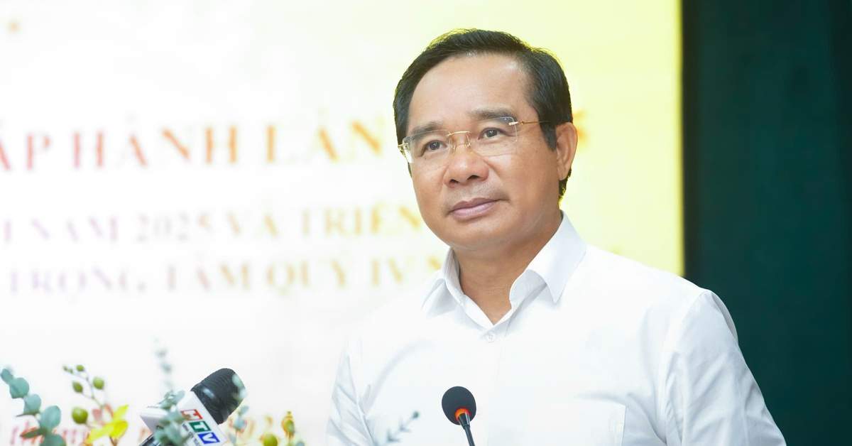 Phó bí thư Thành ủy, Chủ tịch UBND TP.HCM Nguyễn Văn Được phát biểu chỉ đạo hội nghị Ban Chấp hành Đảng bộ phường Sài Gòn – Ảnh: HỮU HẠNH