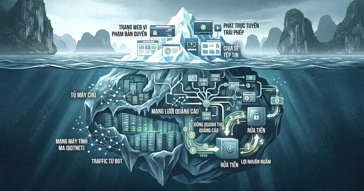 Dòng tiền khổng lồ từ hoạt động phi pháp không tự nhiên xuất hiện. Phía sau hoạt động kinh tế ngầm từ nội dung ăn cắp là cả hệ sinh thái phức tạp, chồng chéo, xuyên biên giới và đầy tinh vi.