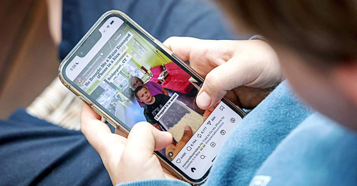 Một cậu bé 14 tuổi xem ứng dụng Instagram trên điện thoại di động – Ảnh: AFP