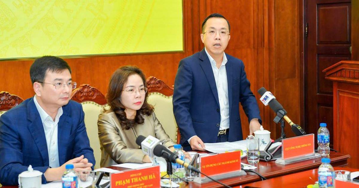 Ông Lê Hoàng Chính Quang, Cục trưởng Cục Công nghệ thông tin Ngân hàng Nhà nước, chia sẻ tại họp báo ngày 29-12 – Ảnh: TTXVN