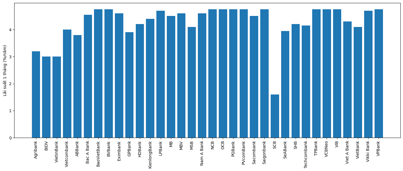 nhất là 4%/năm, được áp dụng tại Vietcombank. Lãi suất kỳ hạn 1 tháng tại Agribank