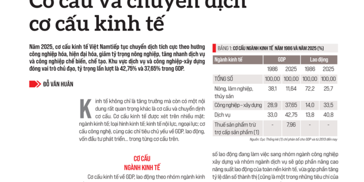 Năm 2025, cơ cấu kinh tế Việt Namtiếp tục chuyển dịch tích cực theo hướng công nghiệp hóa, hiện đại hóa, giảm tỷ trọng nông nghiệp, tăng nhanh dịch vụ và công nghiệp chế biến, chế tạo. Khu vực dịch vụ và công nghiệp-xây dựng đóng vai trò chủ đạo, tỷ trọng lần lượt là 42,75% và 37,65% trong GDP…