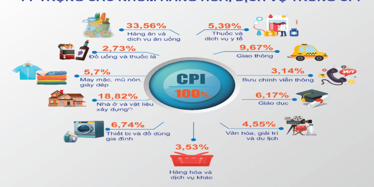 Bên cạnh danh mục hàng hóa, việc xác định cơ cấu chi tiêu của hộ gia đình, còn gọi là “quyền số” cũng là yếu tố then chốt trong tính toán CPI.