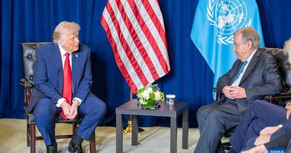 Tổng Thư ký Liên hợp quốc Antonio Guterres tiếp Tổng thống Mỹ Donald Trump tại trụ sở Liên hợp quốc ở TP New York – Mỹ hồi tháng 9-2025. Ảnh: TÂN HOA XÃ