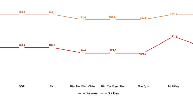 179,6 triệu – 183,1 triệu đồng/lượng trong suốt phiên sáng, DOJI, PNJ và Ngọc