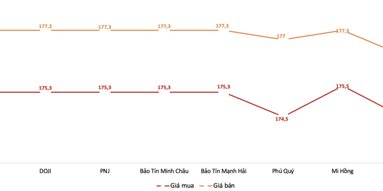 bán, Mi Hồng đặt giá giao dịch vàng miếng ở mức 175,5 triệu – 177,3 triệu đồng/lượng.