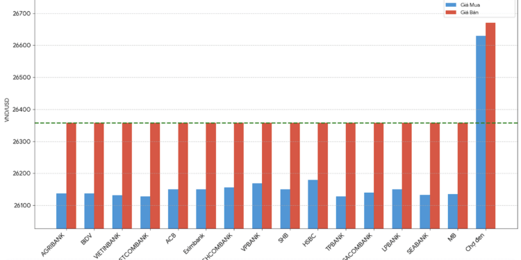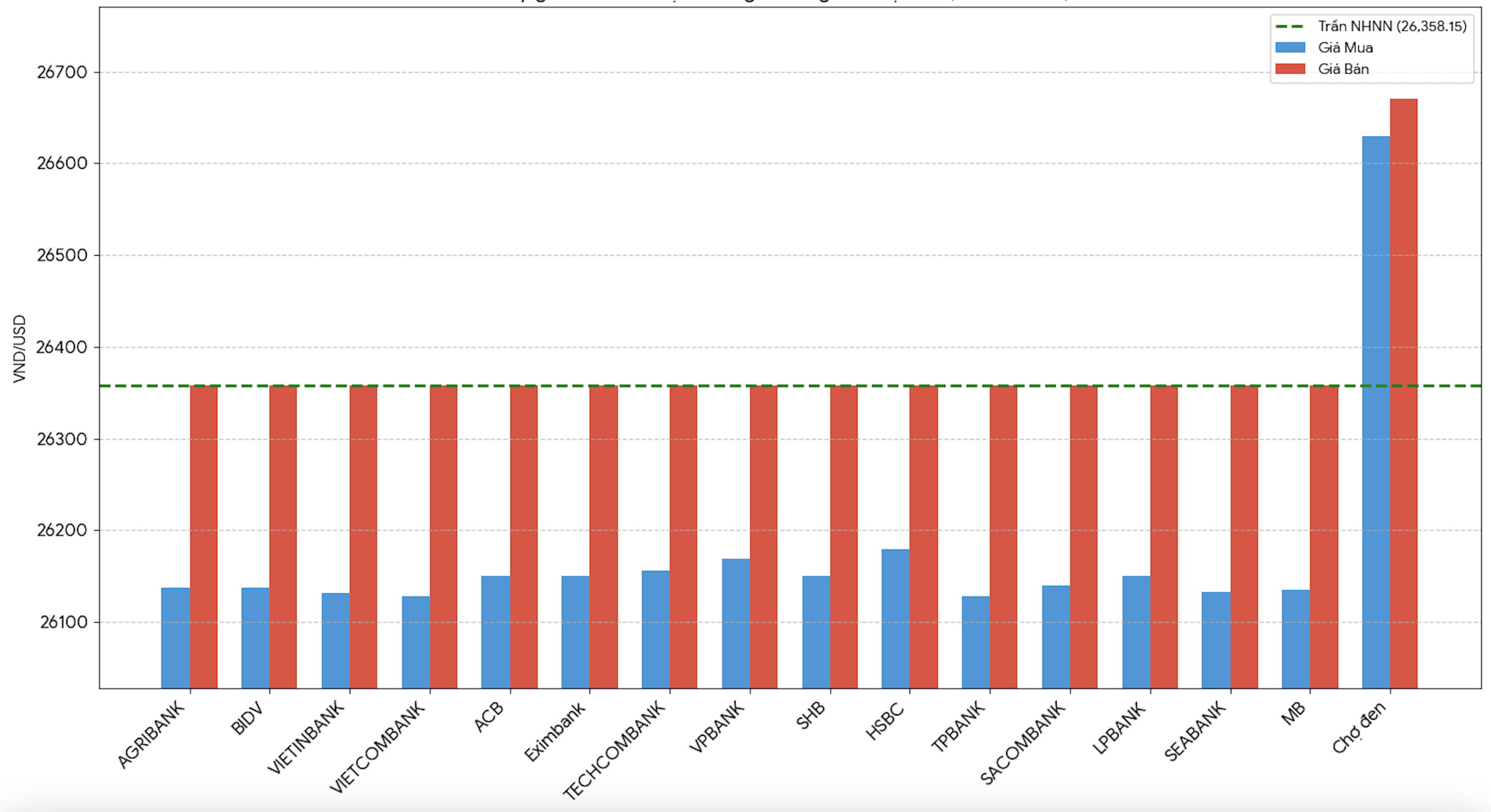 ở ngưỡng 26.358 đồng/USD. Đối với chiều mua, biên độ chênh lệch xét trên mặt bằng