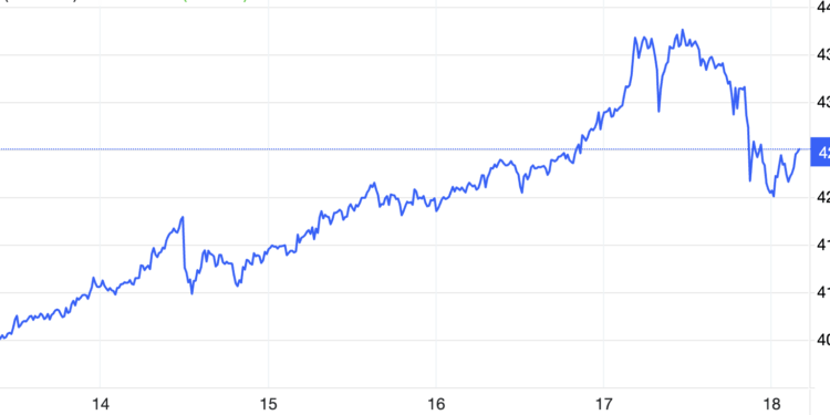 Lúc đóng cửa tại thị trường New York, giá vàng giao ngay sụt 74,5 USD/oz, tương đương giảm 1,72%, còn 4.252,8 USD/oz – theo dữ liệu từ sàn giao dịch Kitco. Quy đổi theo tỷ giá USD bán ra tại ngân hàng Vietcombank, mức giá này tương đương 135 triệu đồng/lượng, giảm 3,1 triệu đồng/lượng so với sáng hôm qua.